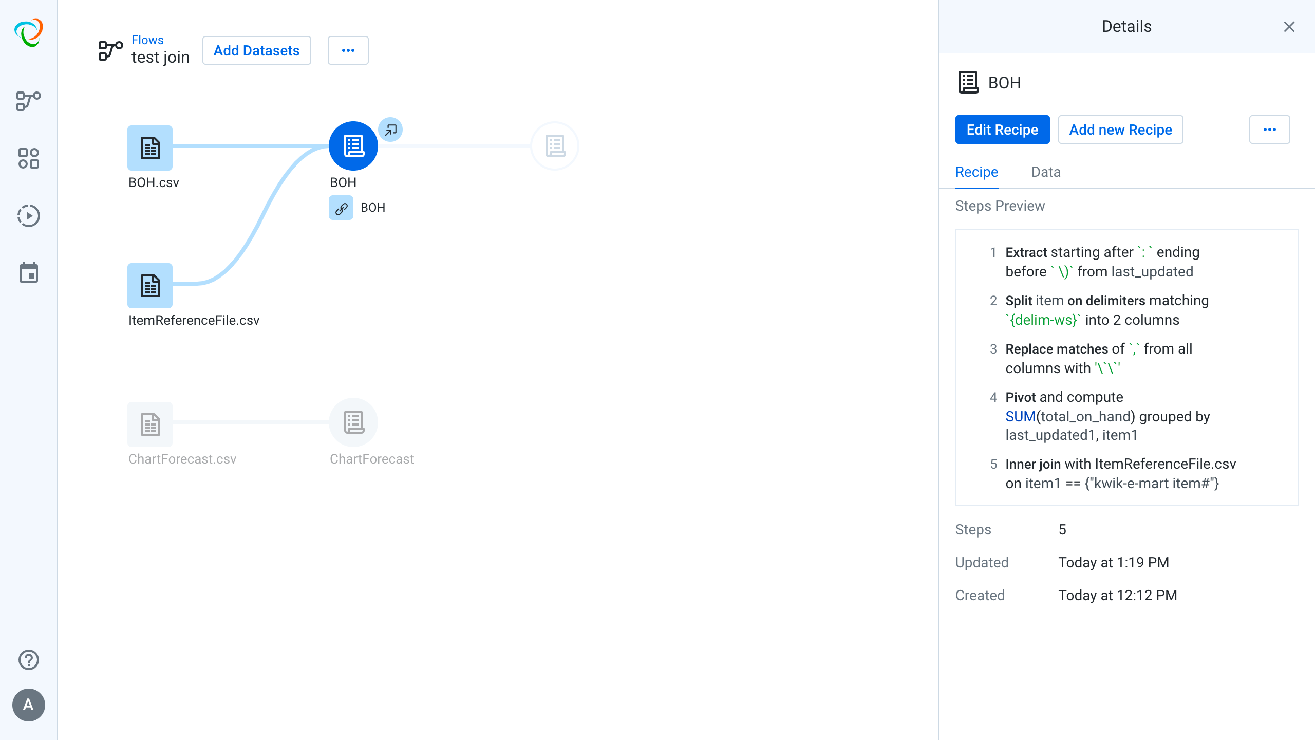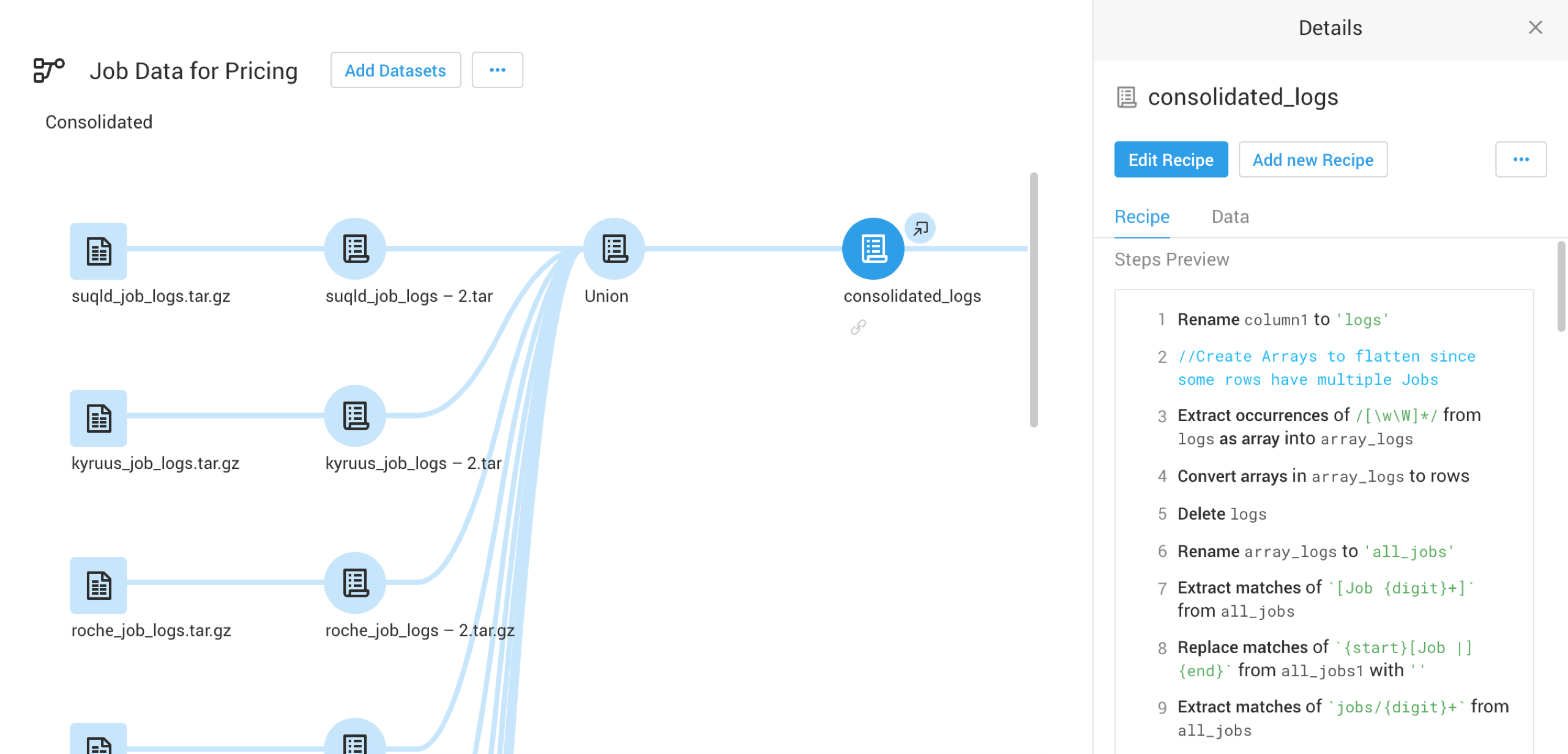 In addition, analysts can’t easily discern among their flow’s dozens of recipes and outputs; troubleshooting requires inspecting each item tediously.