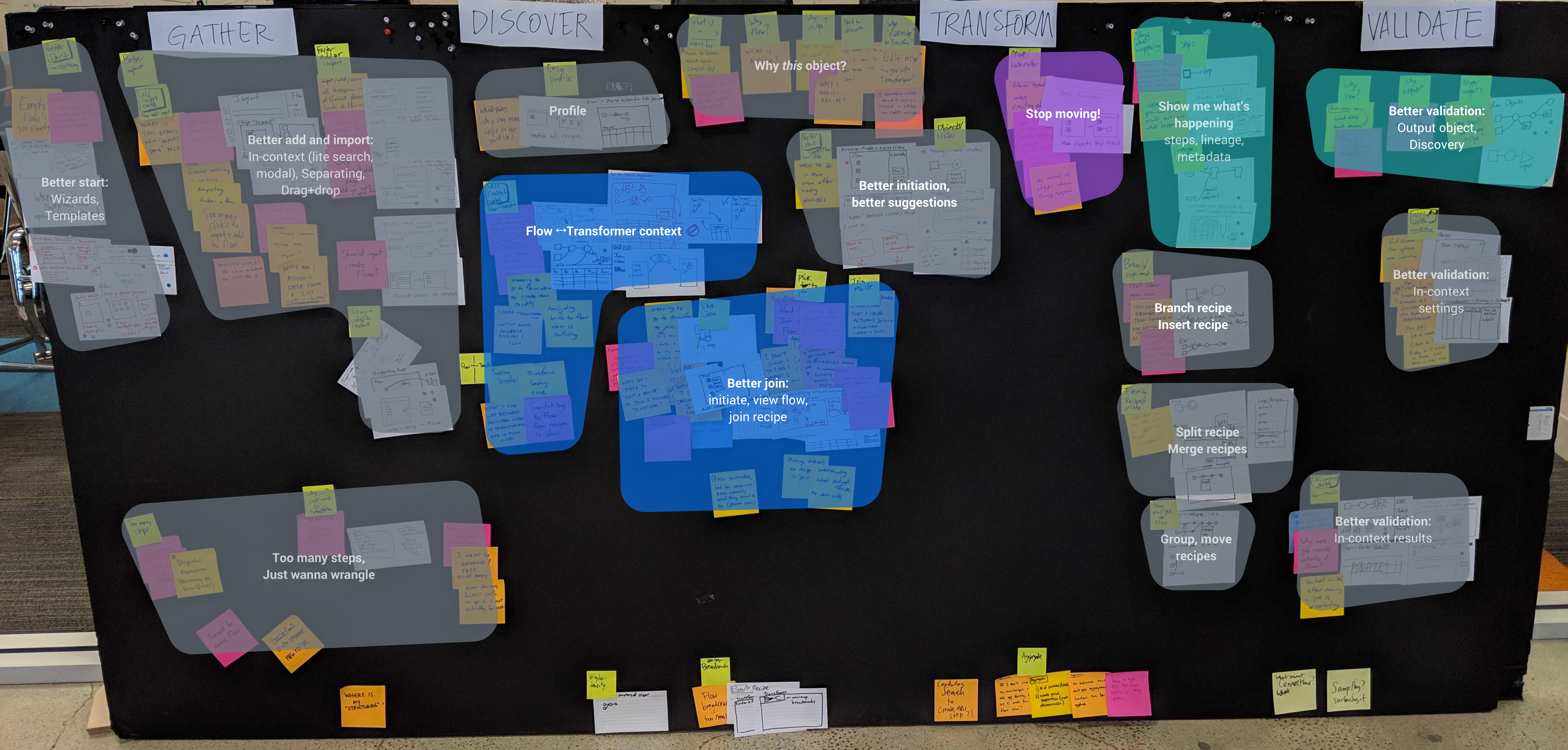 Over two releases I led the design of “flow view”, a new feature where people are able to navigate the relationships of data being combined throughout their transformation work, explore variations of transformations with branches, reuse data across projects with references, and publish data with clarity. Since its first introduction in the spring of 2017, we continued to collect feedback from the community of users and from our colleagues in the field for opportunities to improve.