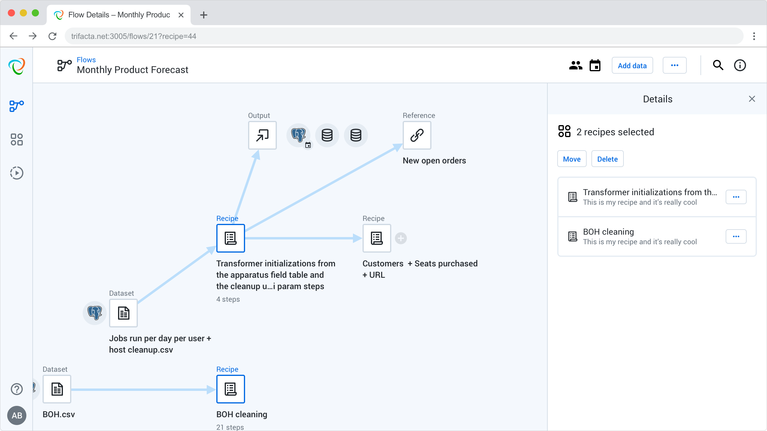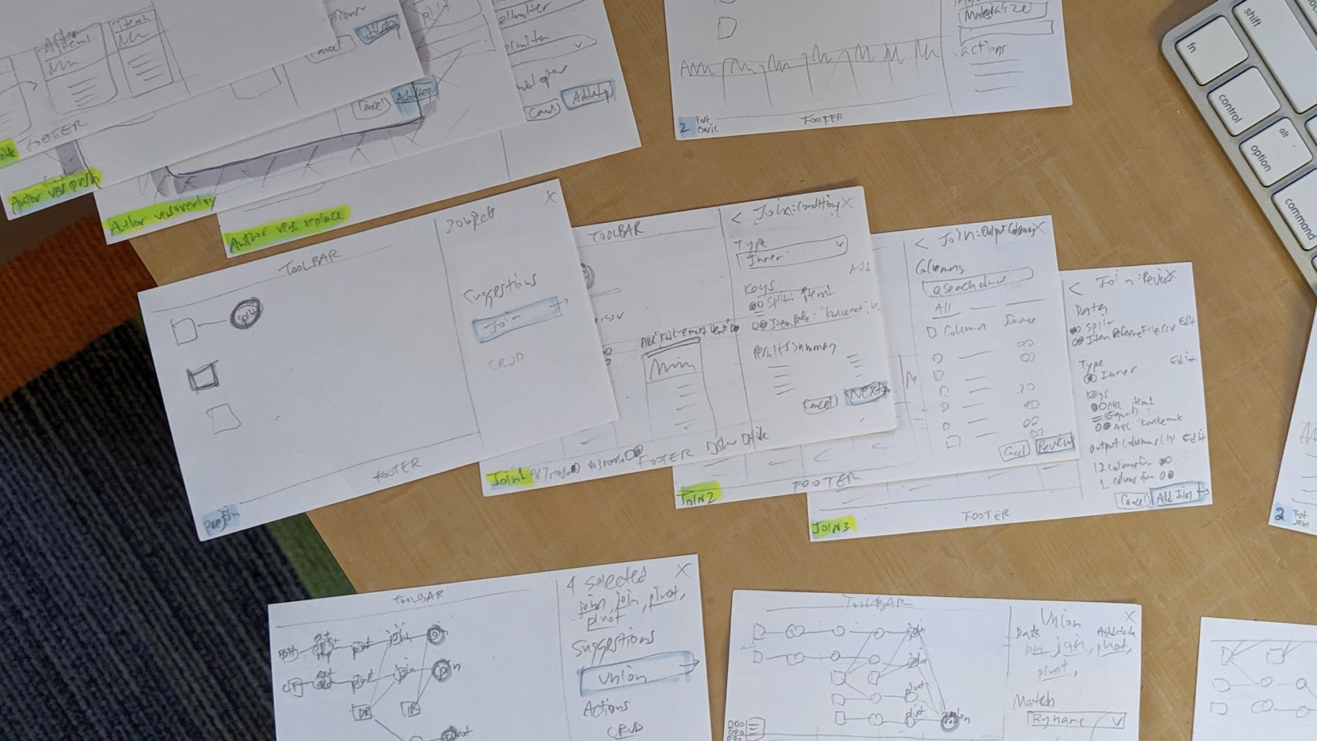 Problem Data analysts experience undue friction completing complex data transformation projects. While a “flow view” provides basic navigation and object management, analysts can’t naturally combine data, must tediously inspect uncertainly long recipes, and can’t reposition their recipes.